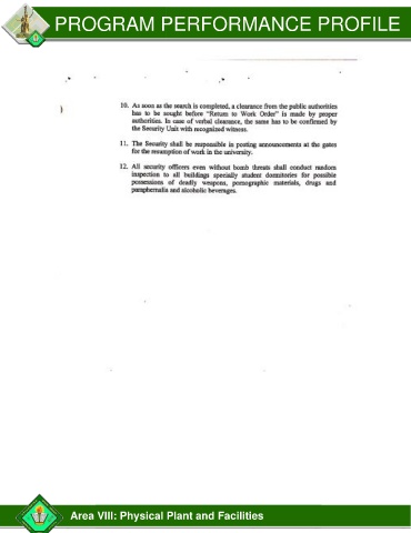 PROGRAM PERFORMANCE PROFILE Area VIII: Physical Plant and Facilities