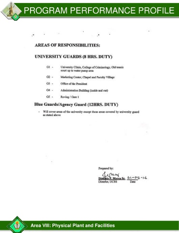 PROGRAM PERFORMANCE PROFILE Area VIII: Physical Plant and Facilities
