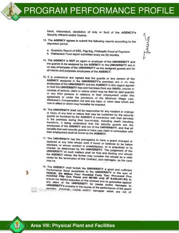 PROGRAM PERFORMANCE PROFILE Area VIII: Physical Plant and Facilities