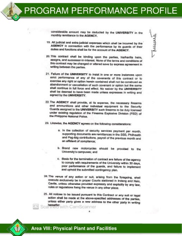 PROGRAM PERFORMANCE PROFILE Area VIII: Physical Plant and Facilities