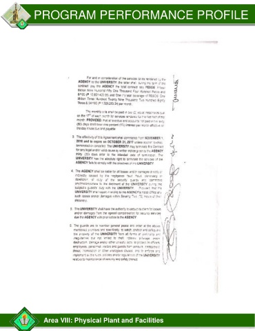 PROGRAM PERFORMANCE PROFILE Area VIII: Physical Plant and Facilities