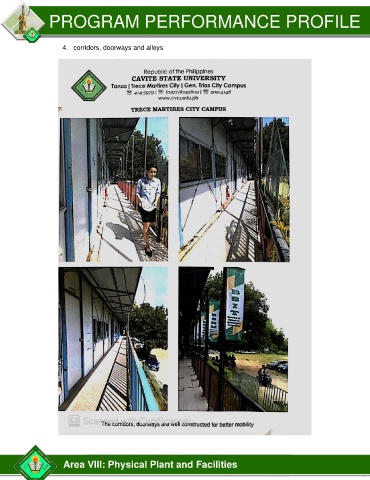 PROGRAM PERFORMANCE PROFILE 4. corridors, doorways and alleys Area VIII: Physical Plant and Facilities