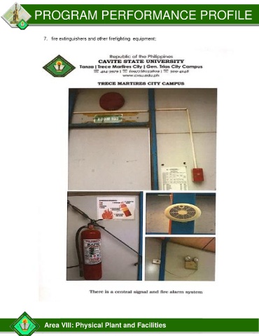 PROGRAM PERFORMANCE PROFILE 7. fire extinguishers and other firefighting equipment; Area VIII: Physical Plant and Facilities