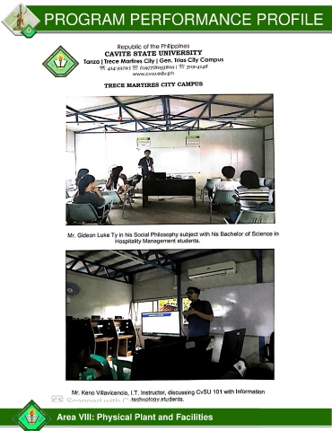 PROGRAM PERFORMANCE PROFILE Area VIII: Physical Plant and Facilities