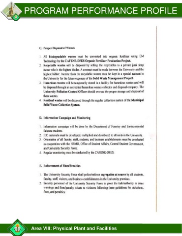 PROGRAM PERFORMANCE PROFILE Area VIII: Physical Plant and Facilities