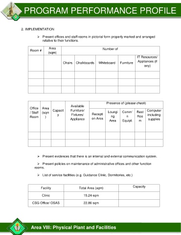 ➢ List of service facilities (e.g. Guidance Clinic, Dormitories, etc.)