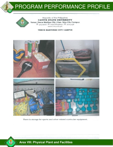 PROGRAM PERFORMANCE PROFILE Area VIII: Physical Plant and Facilities