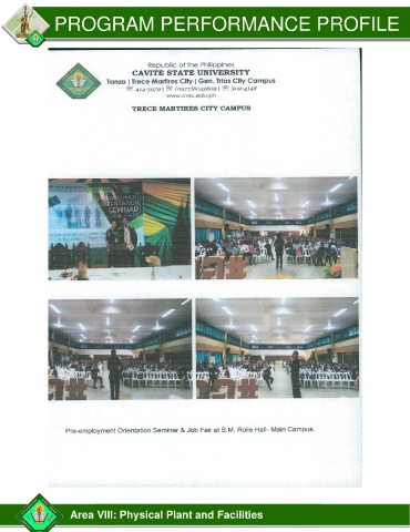 PROGRAM PERFORMANCE PROFILE Area VIII: Physical Plant and Facilities