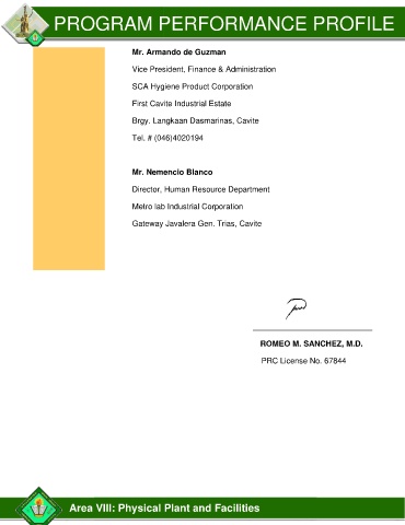 Area VIII: Physical Plant and Facilities