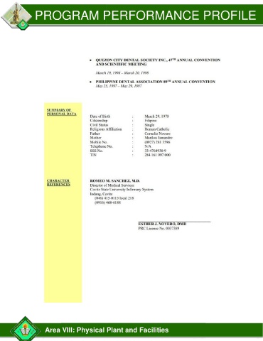 PROGRAM PERFORMANCE PROFILE Area VIII: Physical Plant and Facilities
