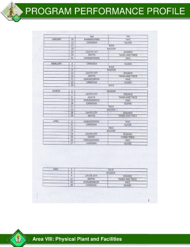 PROGRAM PERFORMANCE PROFILE Area VIII: Physical Plant and Facilities