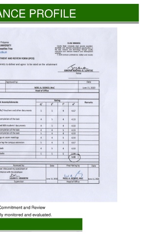 PROGRAM PERFORMANCE PROFILE Individual Performance Commitment and Review Medical services are regularly monitored and evaluated. Area VIII: Physical Plant and Facilities