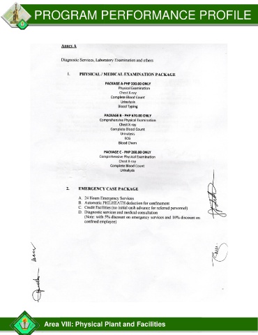 PROGRAM PERFORMANCE PROFILE Area VIII: Physical Plant and Facilities