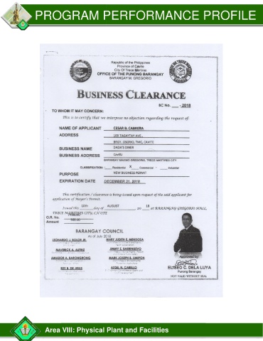 PROGRAM PERFORMANCE PROFILE Area VIII: Physical Plant and Facilities