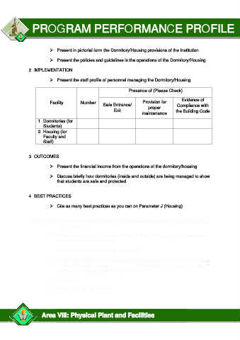 ➢ Present the policies and guidelines in the operations of the Dormitory/Housing.