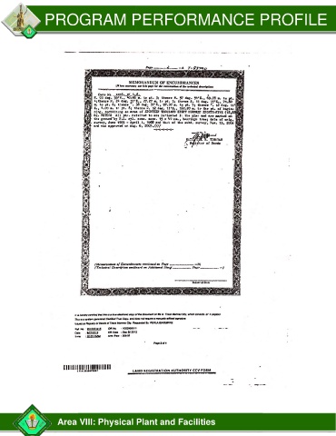 PROGRAM PERFORMANCE PROFILE Area VIII: Physical Plant and Facilities