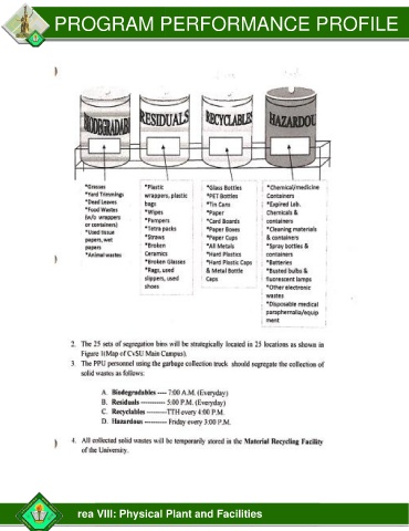 PROGRAM PERFORMANCE PROFILE Area VIII: Physical Plant and Facilities