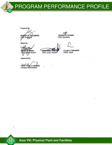 PROGRAM PERFORMANCE PROFILE Area VIII: Physical Plant and Facilities