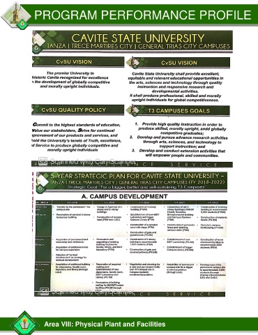 PROGRAM PERFORMANCE PROFILE Area VIII: Physical Plant and Facilities