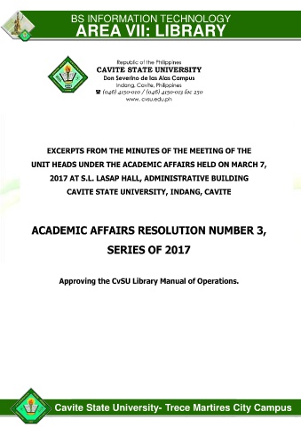BS INFORMATION TECHNOLOGY AREA VII: LIBRARY Cavite State University- Trece Martires City Campus