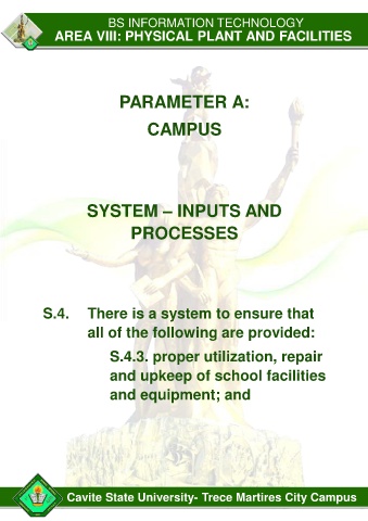 AREA VIII: PHYSICAL PLANT AND FACILITIES