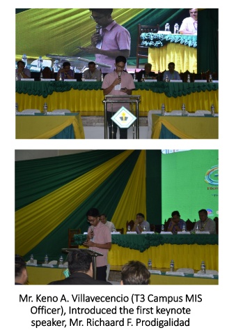 Mr. Keno A. Villavecencio (T3 Campus MIS Officer), Introduced the first keynote speaker, Mr. Richaard F. Prodigalidad