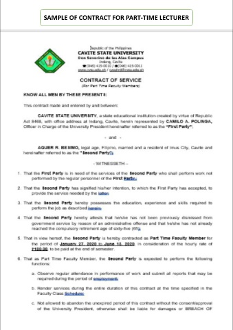 SAMPLE OF CONTRACT FOR PART-TIME LECTURER