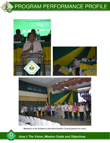 PROGRAM PERFORMANCE PROFILE Members of the Academic and Administrative Council graced the event. Area I: The Vision, Mission Goals and Objectives
