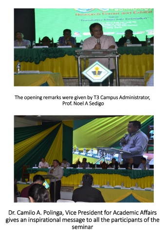 The opening remarks were given by T3 Campus Administrator, Prof. Noel A Sedigo Dr. Camilo A. Polinga, Vice President for Academic Affairs gives an inspirational message to all the participants of the seminar