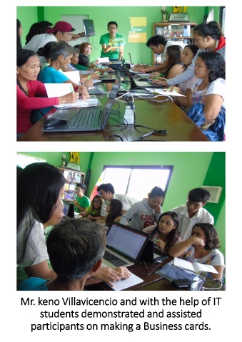 Mr. keno Villavicencio and with the help of IT students demonstrated and assisted participants on making a Business cards.