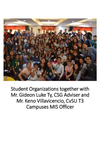 Student Organizations together with Mr. Gideon Luke Ty, CSG Adviser and Mr. Keno Villavicencio, CvSU T3 Campuses MIS Officer