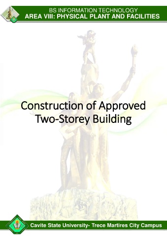 BS INFORMATION TECHNOLOGY AREA VIII: PHYSICAL PLANT AND FACILITIES Construction of Approved Two-Storey Building Cavite State University- Trece Martires City Campus