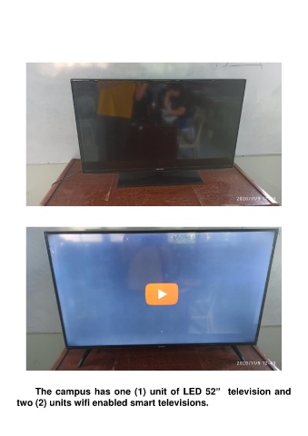 The campus has one (1) unit of LED 52” television and two (2) units wifi enabled smart televisions.