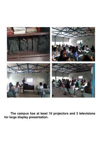 The campus has at least 10 projectors and 3 televisions for large display presentation.