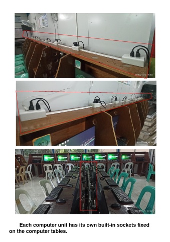 Each computer unit has its own built-in sockets fixed on the computer tables.