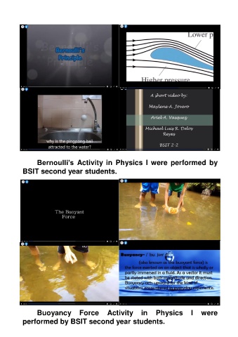 Bernoulli’s Activity in Physics I were performed by BSIT second year students. Buoyancy Force Activity in Physics I were performed by BSIT second year students.