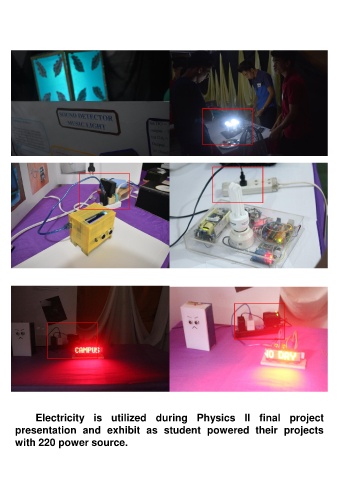 Electricity is utilized during Physics II final project presentation and exhibit as student powered their projects with 220 power source.