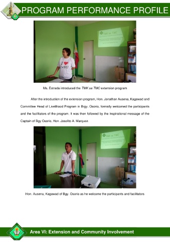 Ms. Estrada introduced the TMK sa TMC extension program