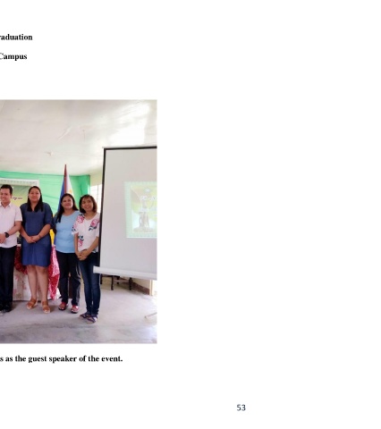 NSTP Graduation Tanza Campus Former CSG President BAE serves as the guest speaker of the event. 53