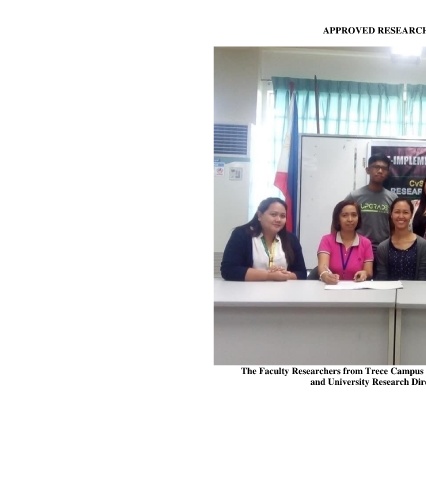 APPROVED RESEARCH CONTRACT SIGNING The Faculty Researchers from Trece Campus with Gad Research Head Dr. Marietta Mojica and University Research Director Dr. Cynthia De la Cruz 58