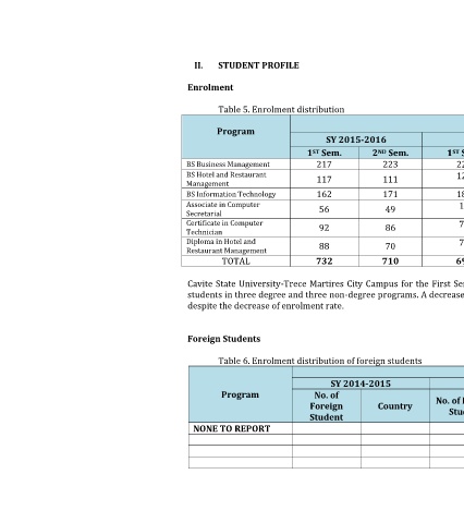 II. STUDENT PROFILE