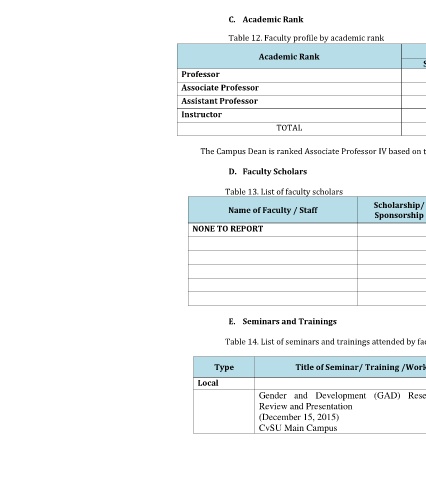 The Campus Dean is ranked Associate Professor IV based on the NBC Cycle 5 while all faculty members are ranked Instructor 1.