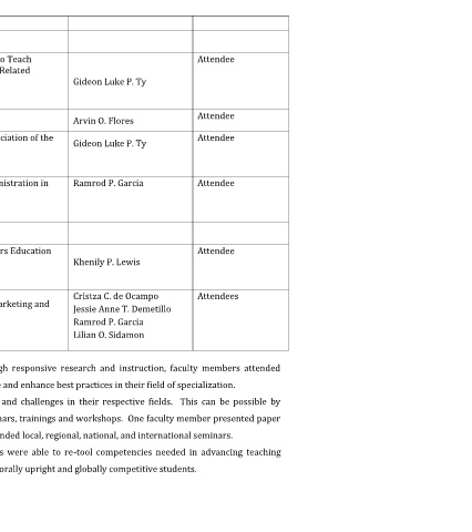 Through attending seminars and trainings, faculty members were able to re-tool competencies needed in advancing teaching