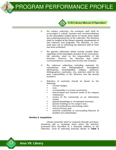 PROGRAM PERFORMANCE PROFILE Area VII: Library