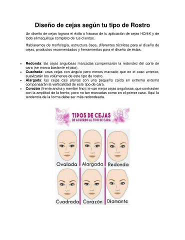 • Redonda: las cejas angulosas marcadas compensarán la redondez del corte de