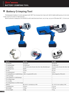 Crimping times on a full charge 320 crimps(Cu150 mm²) 120 crimps(Cu150 mm²)