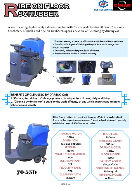 benchmark of small sized ride-on scrubbers, opens a new era of “ cleaning by driving car”.