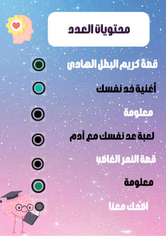محتويات العدد قصة كريم البطل الهادئ أغنية خد نفسك معلومة لعبة عد نفسك مع آدم قصة النمر الغاضب معلومة اضحك معنا