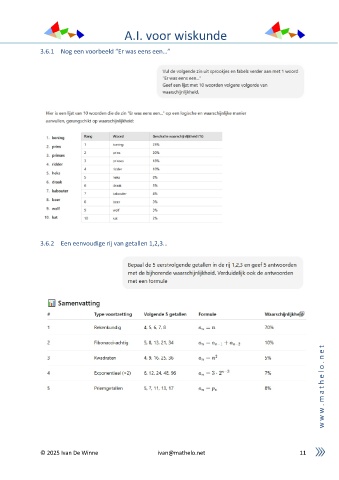 A.I. voor wiskunde 3.6.1 Nog een voorbeeld “Er was eens een…” 3.6.2 Een eenvoudige rij van getallen 1,2,3… t e n . o l e h t a m . w w w © 2025 Ivan De Winne ivan@mathelo.net 11