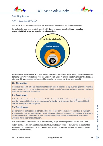te begrijpen. GPT levert de basis voor een Chatbot zoals ChatGPT en is in staat om antwoorden te geven